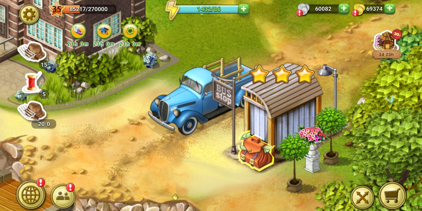 В нижней части карты есть Сундуки с ресурсами для строительства, готовые продукты, растения, энергия и бонусы. Нажмите на Сундук, что бы посмотреть какие в нем товары.